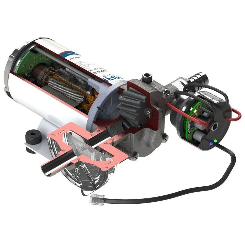 Elettropompa autoadescante ad ingranaggi in PEEK elicoidali, valvola di non ritorno e controllo elettronico. Corpo e connessioni in ottone nichelato, albero in acciaio inossidabile. Principali impieghi: pompa autoclave, sistemi doccetta per yacht, gommoni, barche a vela e camper.