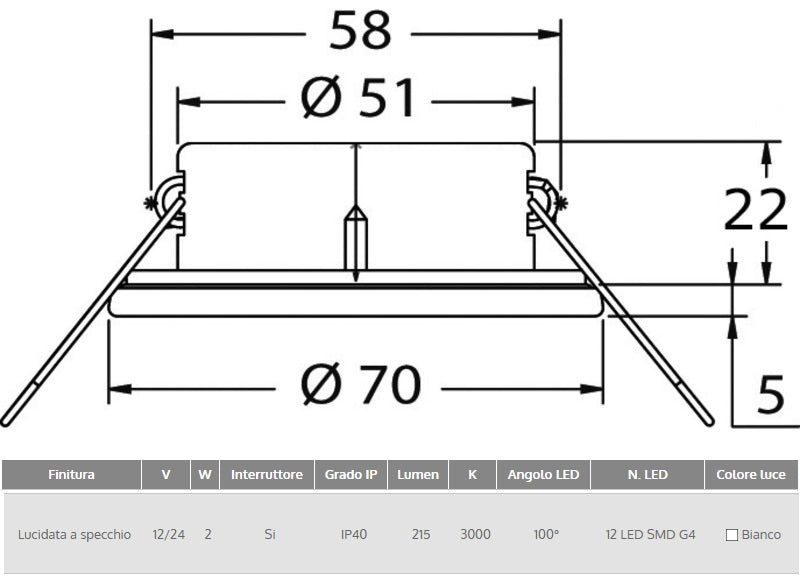 Corpo in acciaio inox. Lente in vetro satinato.