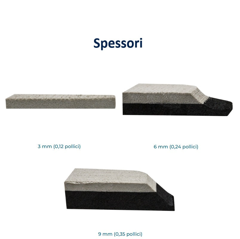 Sei opzioni di spessore differenti: 3 / 6 / 9 / 12 / 18 / 21 mm.