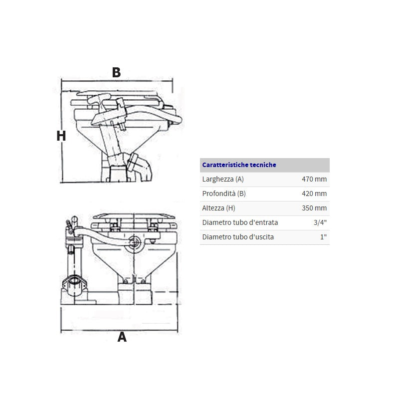 Toilette manuale in porcellana, dal design compatto, che permette una pulizia perfetta. Tutte le parti metalliche e le viti sono in ACCIAIO INOX adatte per l'uso in acqua di mare. Predisposta per allacciamento sia sopra che sotto coperta.